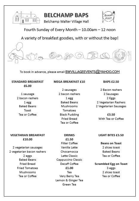Please join us for a Bap of your choice or a Full Breakfast and every combination in between. (See details below)