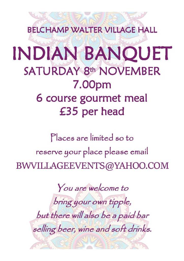For catering purposes it’s really helpful if you could let us know if you’re intending to come to our events. (Booking for the Indian Banquet is essential!) If you would like more information and to register your interest please email: bwvillageevents@yahoo.com.